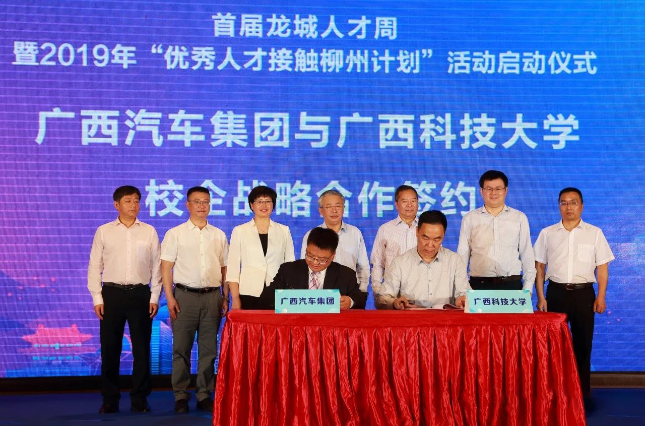 4月10日,首屆龍城人才周暨2019年“優(yōu)秀人才接觸柳州”活動在柳州舉行啟動儀式。在啟動會上廣西汽車集團(tuán)獲得了博士后科研工作站授牌、與武漢理工大學(xué)簽訂汽車人才培訓(xùn)培養(yǎng)合作框架協(xié)議以及與廣西科技大學(xué)簽訂戰(zhàn)略合作框架協(xié)議。